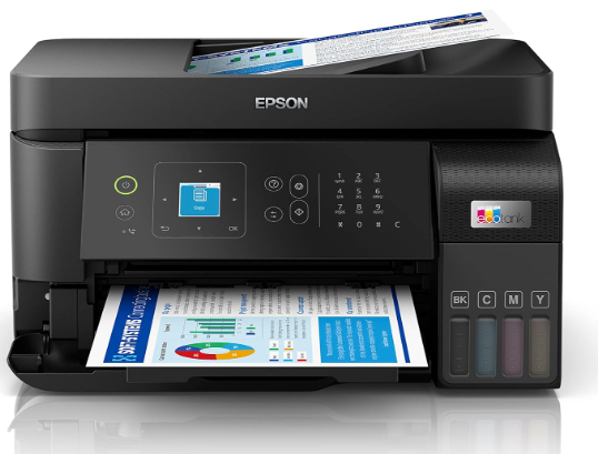Impresora Epson a color EcoTank L5590, C11CK57301. Tecnología de Impresión: Inyección de tinta Heat-FreeTM Micro Pieza de 4 colores (CMYK) Resolución Máxima de Impresión: Hasta 4.800 dpi x 1.200 dpi de resolución optimizada en varios tipos de papel. Velocidad de Impresión ISO: Simplex: Negro 15 ppm y color 8 ppm (A4/carta) Velocidad de Impresión: Simplex: Negro 33 ppm y color 20 ppm (borrador, A4/carta) Tiempo de salida de la primera página: 9 segundos blanco y negro / 15 segundos color. COPIAR: Velocidad de Copiado ISO: Negro 10,8 cpm y color 5,5 cpm (A4/carta)4Calidad de Copia:300 dpi x 600 dpi. Máximo Tamaño de Copia: Oficio (ADF). ESCANER: Tipo de Escáner: Cama plana con sensor de líneas CIS de color. Resolución Óptica:1.200 dpi x 2.400 dpi. Profundidad del Bit de Color:48 bits de entrada, 24 bits de salida. Profundidad del Bit Monocromático:16 bits de entrada, 1 bit de salida. Profundidad de la Escala de Grises del Bit:16 bits de entrada, 8 bits de salida. Máxima Superficie de Digitalización:216 mm x 297 mm. Velocidad de Escaneo:12 segundos blanco y negro/ 29 segundos color. Conectividad Estándar: USB de alta velocidad (compatible con USB 2.0) ,Wi-Fi 4 (IEEE 802.11 b/g/n), Wi-Fi Direct®, Ethernet 10/100 Consumibles: T544120-AL, T544220-AL, T544320-AL, T544420-AL. Garantia: 1 año en centro de servicio autorizado