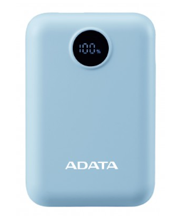 PowerBank ADATA C100 de 10,000 mAh. Carga simultánea de 2 dispositivos. Con indicador LED de carga. Color AZUL. PC10022-12LB